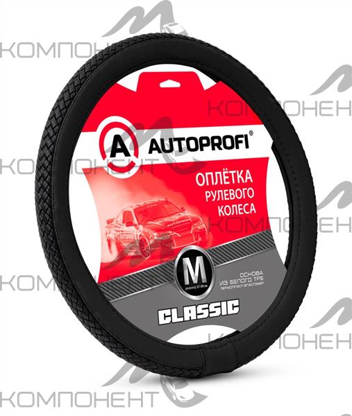 Оплетка руля M экокожа AUTOPROFI Classic плетеная вставка по центру Черный