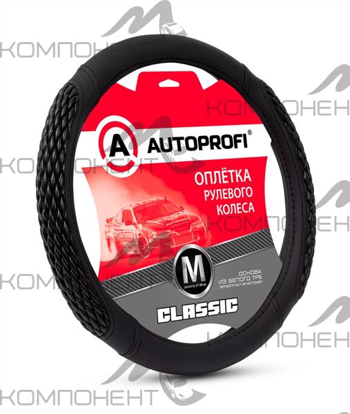Оплетка руля M экокожа AUTOPROFI Classic спонж. вставка, прострочка ромб Черный