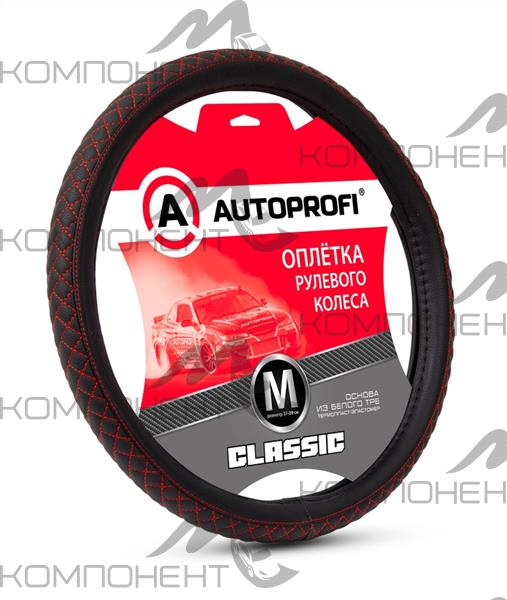 Оплетка руля M экокожа AUTOPROFI Classic центр. вставка, прострочка ромб Черный/красный