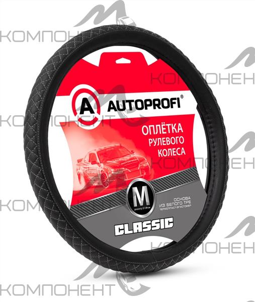 Оплетка руля M экокожа AUTOPROFI Classic центр. вставка, прострочка ромб Черный/темно-серый