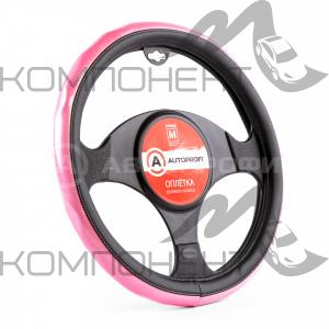 Оплетка руля M экокожа AUTOPROFI вставки по ободу ПВХ глянец Черно/Розовая