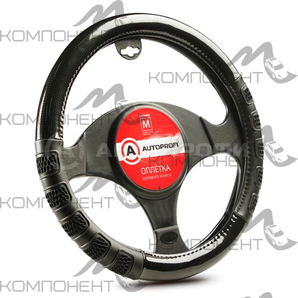 Оплетка руля M экокожа AUTOPROFI две 3D вставки под хват, гладкая основа с вставкой Черн
