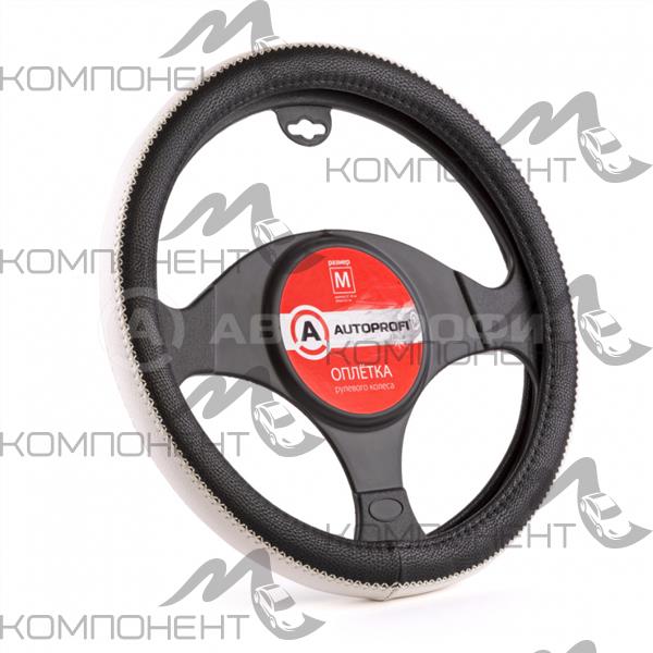 Оплетка руля M экокожа AUTOPROFI декоративная прострочка по ободу Черно/Белая