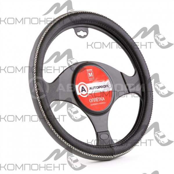 Оплетка руля M экокожа AUTOPROFI декоративная прострочка по ободу Черно/Серая
