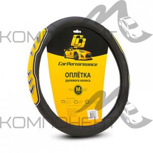 Оплетка руля M экокожа CAR PERFORMANCE две 3D вставки под хват, гладкая основа Черн/Желт