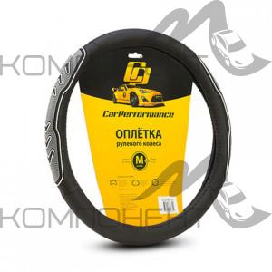 Оплетка руля M экокожа CAR PERFORMANCE две 3D вставки под хват, гладкая основа Черн/Сер