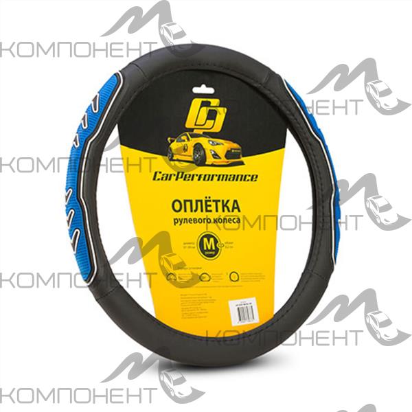 Оплетка руля M экокожа CAR PERFORMANCE две 3D вставки под хват, гладкая основа Черн/Син