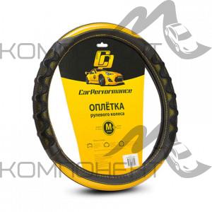 Оплетка руля M экокожа CAR PERFORMANCE две объемные вставки с массаж.эффектом, ПВХ вставка Черн/Желт