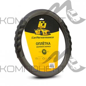 Оплетка руля M экокожа CAR PERFORMANCE две объемные вставки с массаж.эффектом, прострочка Черн/Серый