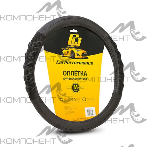 Оплетка руля M экокожа CAR PERFORMANCE две объемные вставки с массаж.эффектом, прострочка Черная