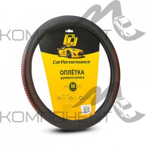 Оплетка руля M экокожа CAR PERFORMANCE контрастный рисунок под перфорацию, гладкая основа Черн/Красн