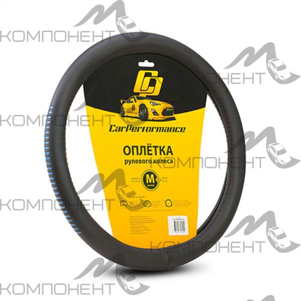Оплетка руля M экокожа CAR PERFORMANCE контрастный рисунок под перфорацию, гладкая основа Черн/Синий