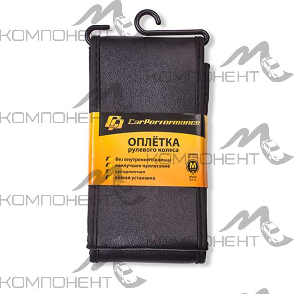Оплетка для перетяжки руля M экокожа CAR PERFORMANCE эластичная гладкая основа без кольца Черная