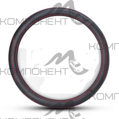 Оплетка руля M экокожа CARFORT Carbone прошивка черная красная