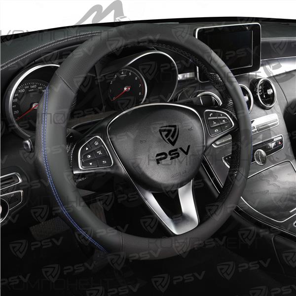 Оплетка руля M экокожа PSV RIB Черный/Отстрочка синяя