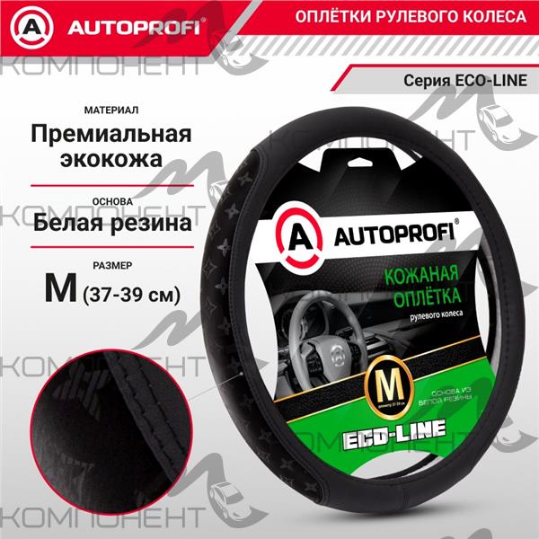Оплетка руля M экокожа премиальная AUTOPROFI Eco-Line вставки с принтом в стиле Fashion Черный
