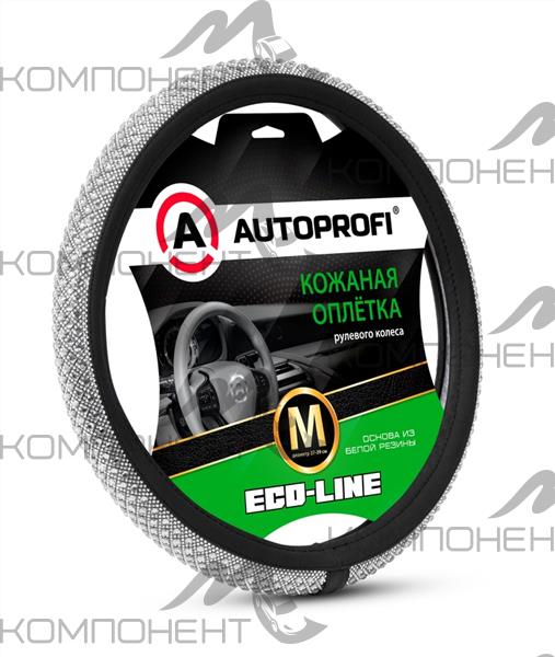 Оплетка руля M экокожа премиальная AUTOPROFI Eco-Line центр. вставка с кристаллами Черный/белый