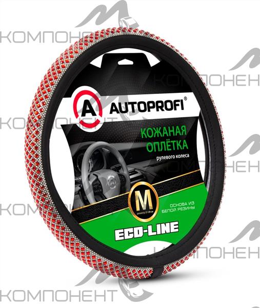 Оплетка руля M экокожа премиальная AUTOPROFI Eco-Line центр. вставка с кристаллами Черный/красный