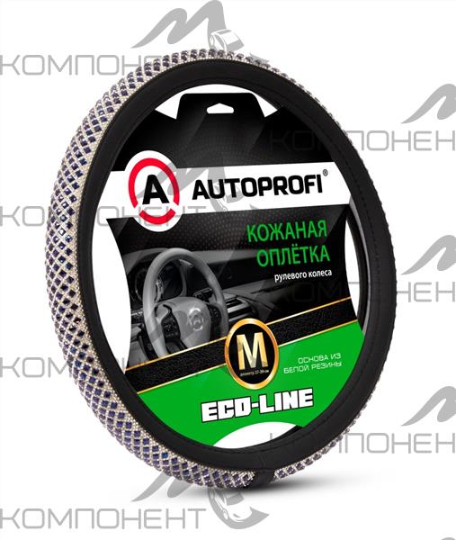 Оплетка руля M экокожа премиальная AUTOPROFI Eco-Line центр. вставка с кристаллами Черный/синий