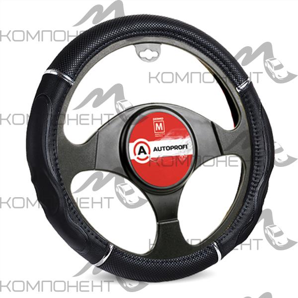 Оплетка руля M экокожа+ПВХ AUTOPROFI гелев.наполнитель. спорт.дизайн, вставки с тиснением Черный