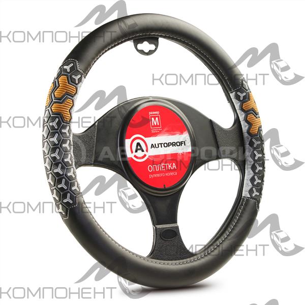 Оплетка руля S экокожа AUTOPROFI две 3D вставки под хват из мягкого PVC с объемным узором Черн/серый