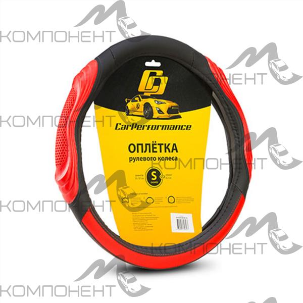 Оплетка руля S экокожа CAR PERFORMANCE две 3D вставки под хват, гладкая основа с перфор. Черн/Красн