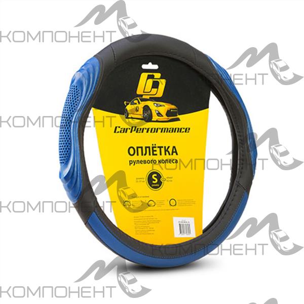 Оплетка руля S экокожа CAR PERFORMANCE две 3D вставки под хват, гладкая основа с перфор. Черн/Синий
