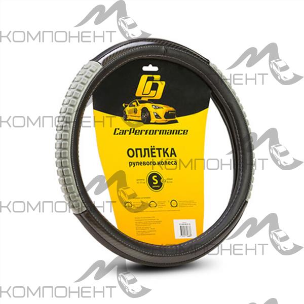 Оплетка руля S экокожа CAR PERFORMANCE две силиконовые вставки под хват, гладкая основа Черн/Серая