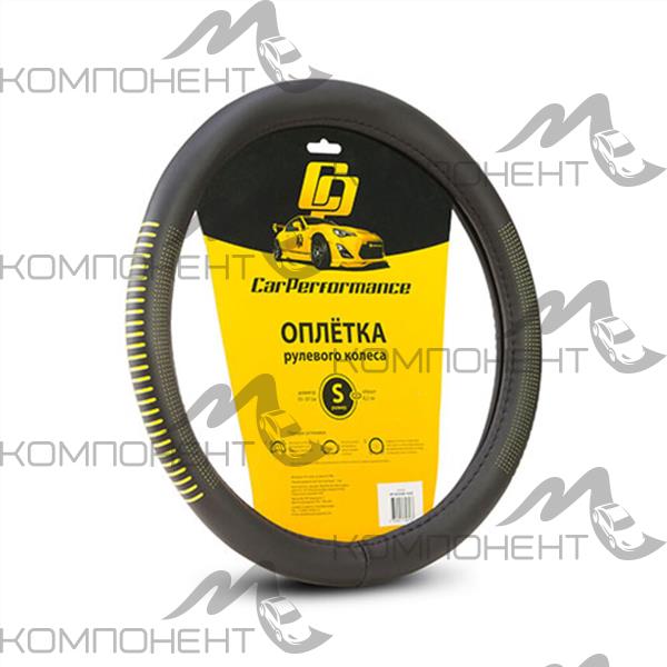Оплетка руля S экокожа CAR PERFORMANCE контрастный рисунок под перфорацию, гладкая основа Черн/Желт
