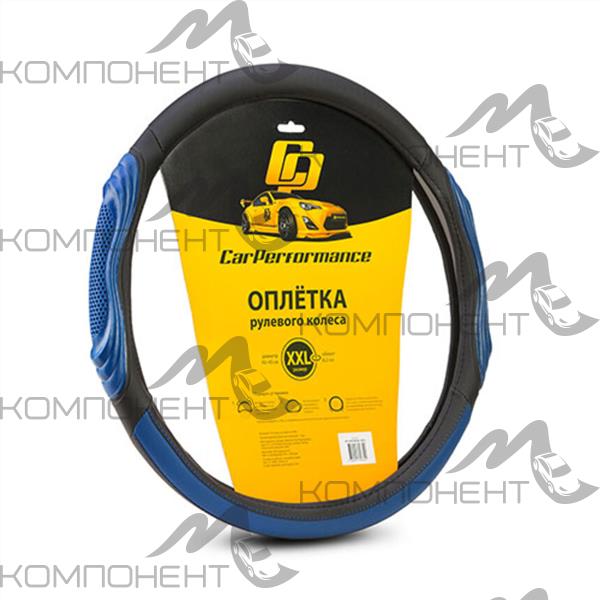 Оплетка руля XXL экокожа CAR PERFORMANCE две 3D вставки под хват, гладкая основа с перфор.Черн/Синий