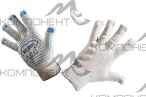 Перчатки х/б с ПВХ "Хозяин" 10кл. ПРЕМИУМ белые Логотип