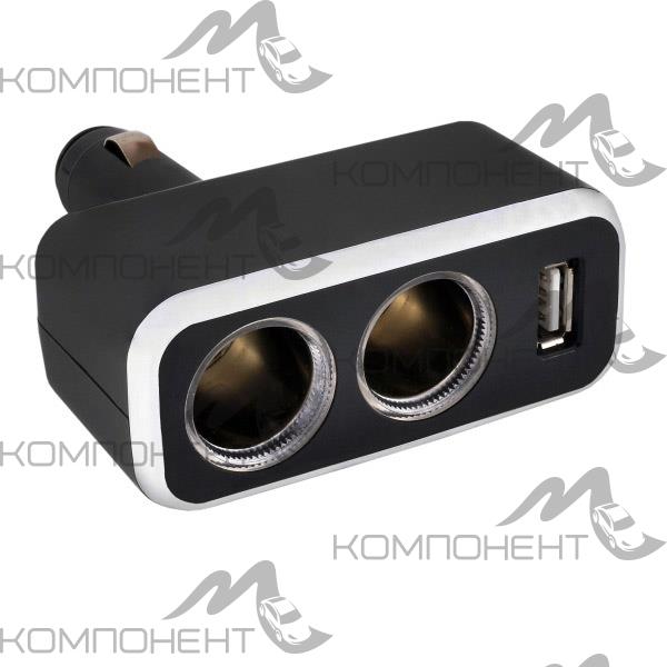 Разветвитель прикуривателя 2 гнезда + USB SKYWAY предохранитель 5А, USB 1A Черный