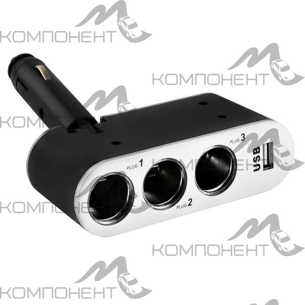 Разветвитель прикуривателя 3 гнезда + USB SKYWAY предохранитель 5А, USB 1A Черный