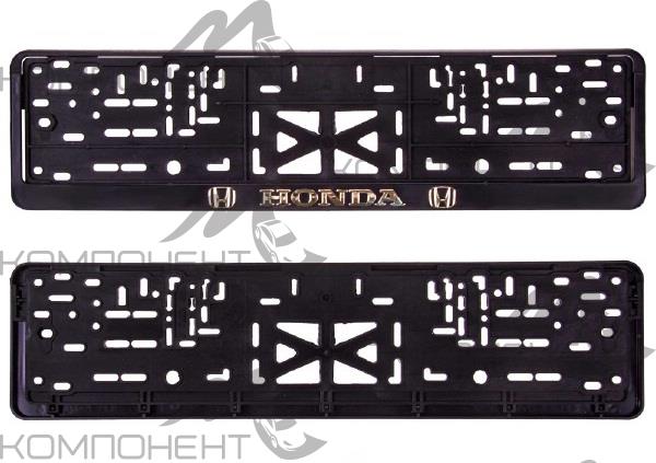 Рамка номера пластмассовая с защелкой, надпись золото Honda рельеф.