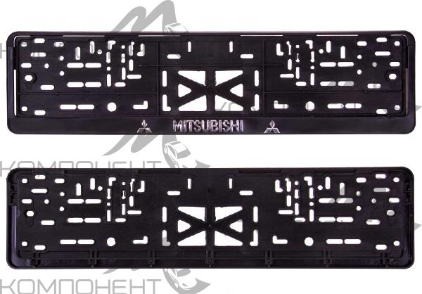 Рамка номера пластмассовая с защелкой, надпись серебро Mitsubishi рельеф.