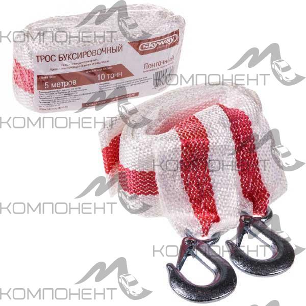 Трос буксировочный лента 10т (2крюка длина 5м) SKYWAY в пакете