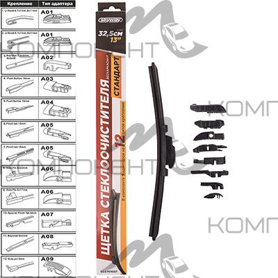 Щетка стеклоочистителя бескаркасная 33см/13" SKYWAY СТАНДАРТ (1шт) 9 адаптеров