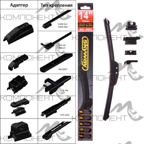 Щетка стеклоочистителя бескаркасная 35см/14" SKYWAY (1шт) 5 адаптеров