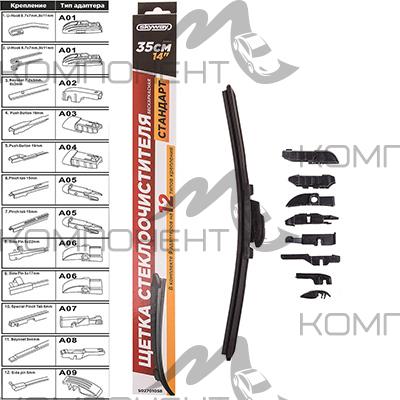 Щетка стеклоочистителя бескаркасная 35см/14" SKYWAY СТАНДАРТ (1шт) 9 адаптеров