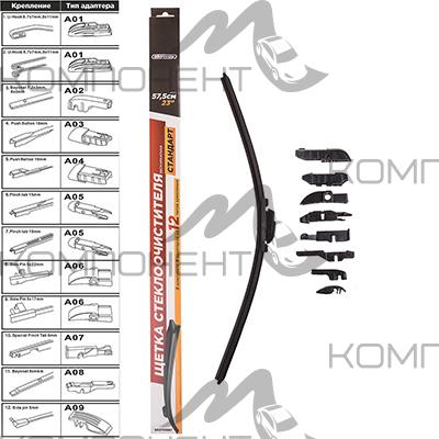 Щетка стеклоочистителя бескаркасная 58см/23" SKYWAY СТАНДАРТ 1шт. 9 адаптеров