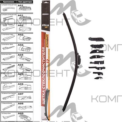 Щетка стеклоочистителя бескаркасная 65см/26" SKYWAY СТАНДАРТ 1шт. 9 адаптеров