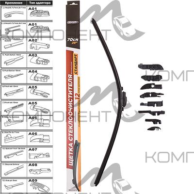 Щетка стеклоочистителя бескаркасная 70см/28" SKYWAY СТАНДАРТ 1шт. 9 адаптеров