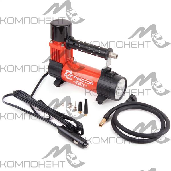 Компрессор 30л/мин 7 АТМ АГРЕССОР 12V/10A 140W мет, в прикурив. шланг 1м LED фонарь, сумка
