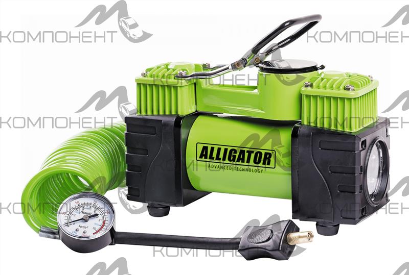 Компрессор 55л/мин 10 АТМ ALLIGATOR 12V/23A 220W мет,от АКБ шланг 4м, двухпоршн, фонарь, сумка