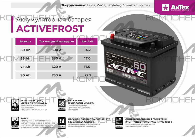 Аккумулятор 6CT-190N ActiveFrost 1250EN AF 190-3-L-B-o прям болт (514*218*217) (АкТех)