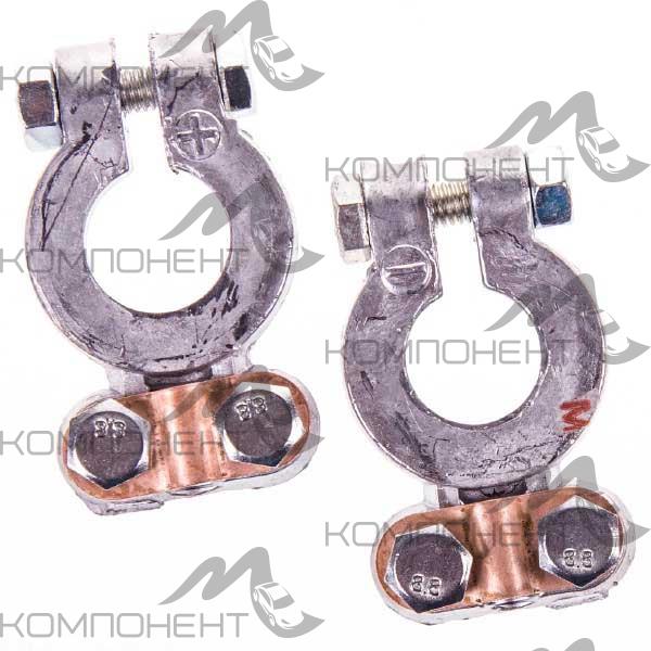 Клеммы АКБ свинец SKYWAY КОНТАКТ европа (+) - 17 мм, (-) - 16 мм (легкие) крепление 2 болта