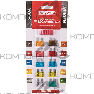 Комплект предохранителей флажковый MEDIUM с пинцетом в блистере 5-30А SKYWAY (10шт)