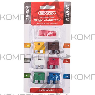 Комплект предохранителей флажковый MEDIUM с пинцетом в блистере 7,5-30А SKYWAY (12шт)