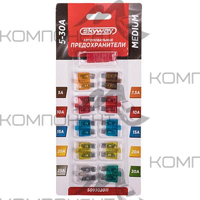 Комплект предохранителей флажковый MEDIUM с пинцетом со световой инд. в блистере 5-30А SKYWAY (10шт)