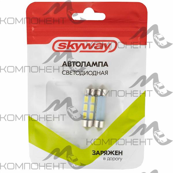 Лампа подсветки салона, номера 5W 12V 36мм 6 SMD диодов 1конт. SKYWAY белая (2шт)